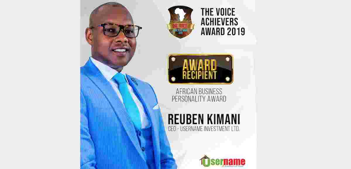 Reuben Kimani, CEO, Username Investment Limited is the 2019 recipient of the African Business Personality Award at the Voice Achievers Award. The prestigious award seeks to recognize outstanding men and women who have made substantial contributions towards the advancement of Africa and its people.