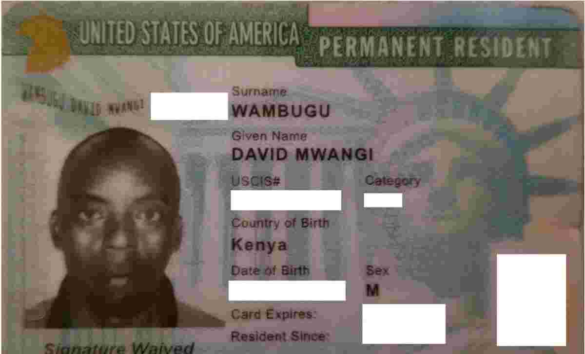 A Permanent Resident Card (Green Card) belonging to a Kenyan national by the name David Mwangi Wambugu was found lying on the street in Baltimore, Maryland.