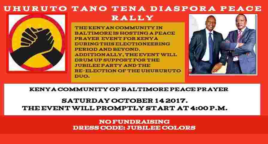 The Kenyan community in Baltimore will be hosting a Peace Prayer event for Kenya on Saturday, October 14th in Baltimore, Maryland.
