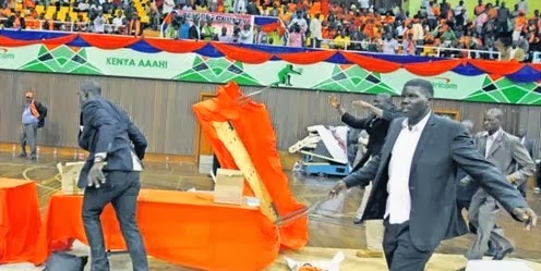 A similar group of men dressed in black stormed Kasarani Stadium in 2014 as ODM was conducting party elections, smashed ballot boxes, and destroyed voting papers. Those party elections had to be postponed to a later date.