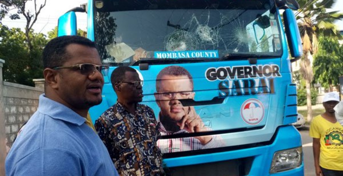 The senator, who is seeking to oust Governor Ali Joho from the Mombasa governor seat in the August 8 polls on a Wiper Party ticket, said the 3:00 am incident was carried out by unidentified group of youth, who hurled stones at his campaign truck parked outside his Renaissance Centre offices in Kizingo.