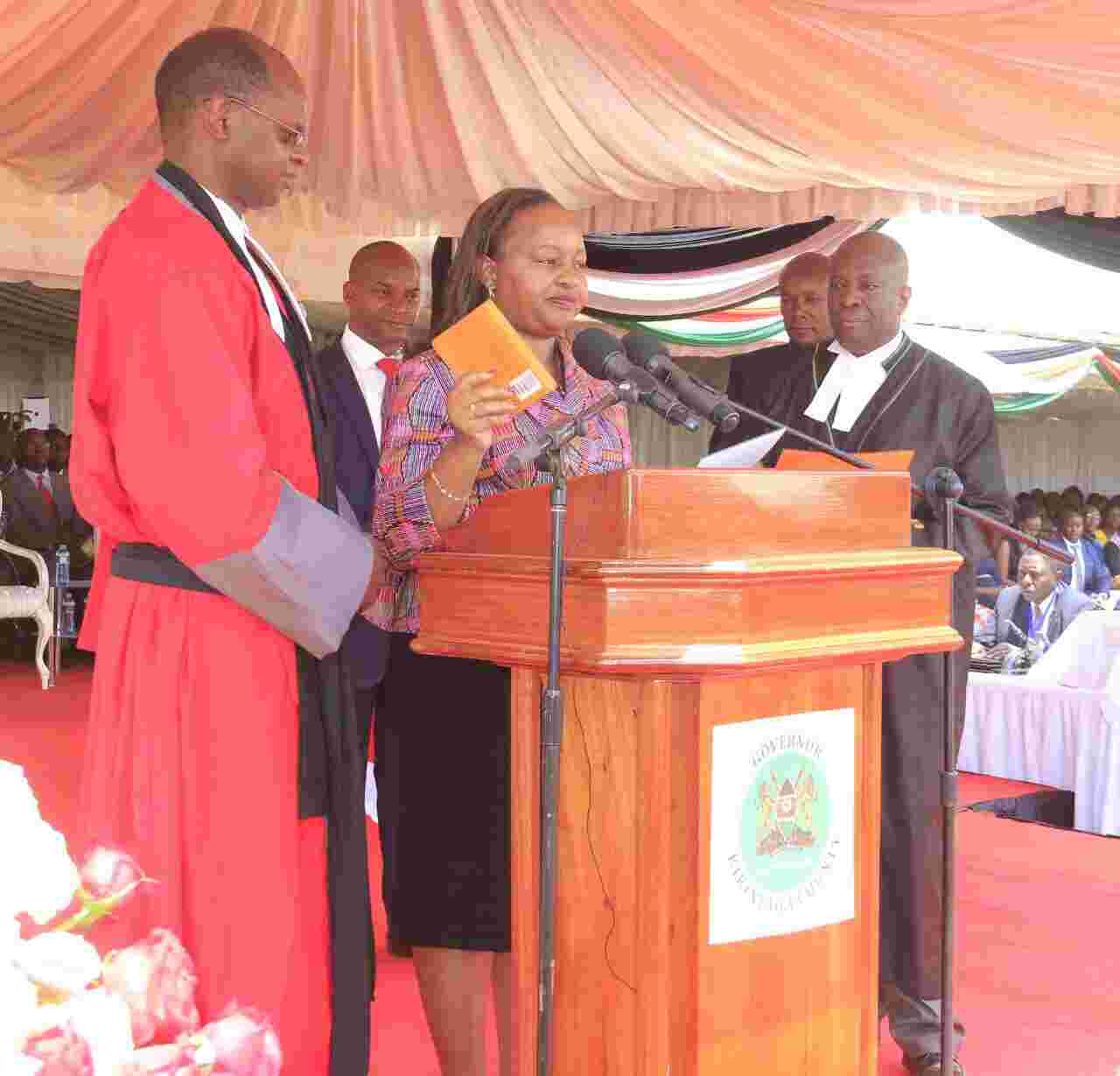 Hundreds of miles away, former National Assembly deputy speaker Joyce Laboso also took oath of office as the new Bomet governor, after beating incumbent Isaac Ruto of Chama Cha Mashinani to clinch the seat.