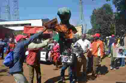 The protesters set ablaze an effigy of Karua outside the court premises.