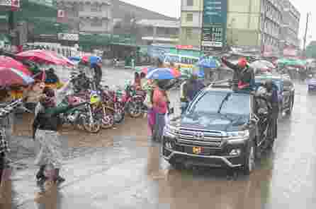 The President and his Jubilee brigade were met by heavy downpour while on a campaign tour to Nyahururu town, but the President was undeterred by the rains.