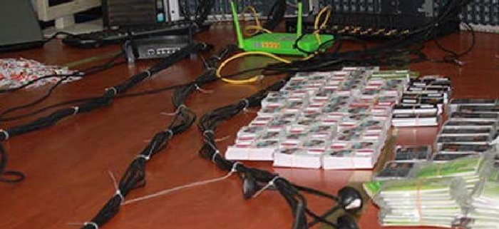 An Apple laptop, 2,160 unused Safaricom SIM cards, 44 used Safaricom SIM cards, 5 Till Agent numbers, three Mpesa Safaricom books, an internet booster router and 2 mobile phones; a blackberry and Samsung J7 were recovered during the arrest.