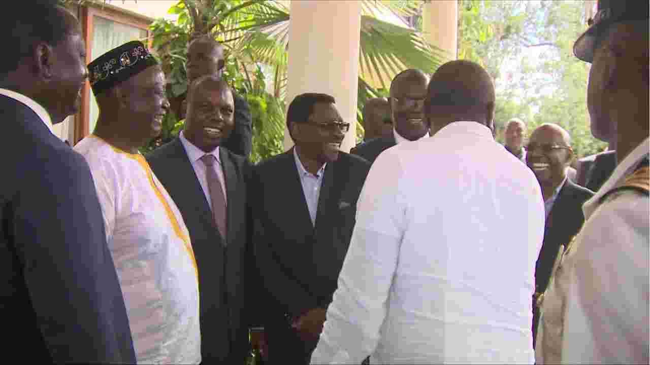 Kenyatta arrived at Odinga's residence for breakfast with Odinga, his elder brother Oburu, Siaya Senator James Orengo, Siaya Governor Cornel Rasanga and tycoon Jimi Wanjigi.