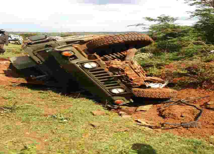 The driver of the vehicle carrying the military officers is said to have lost control before colliding head-on with an approaching private car at Matunda area along Meru–Isiolo Highway.
