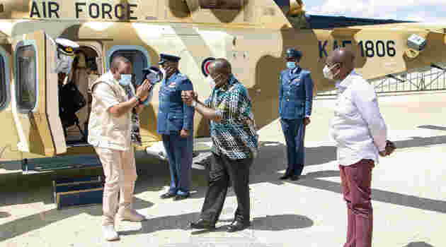 @Ruto - where is the damn wheelbarrow to carry Uhuru around?? I think you could do better carrying him around instead of flying in a military helicopter!