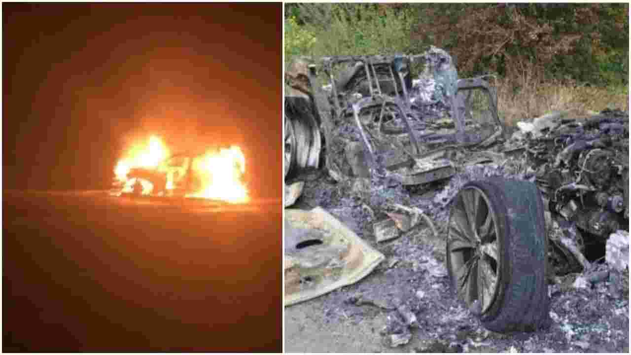 An incensed mob at the scene took the law into their own hands and set the Toyota Prado ablaze after overpowering police officers, who tried to contain the situation.