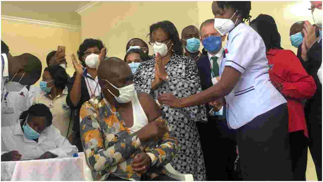 Amoth got the Oxford/AstraZeneca COVID-19 jab during the official launch of the immunization campaign at Kenyatta National Hospital (KNH) on Friday.