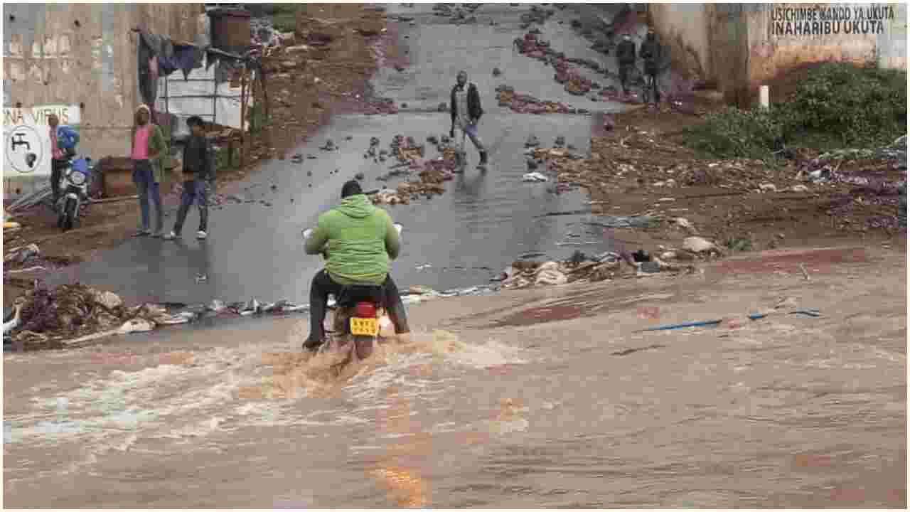 The four were reportedly swept away while trying to cross Mutuine River from Lang’ata to Kibra slums on motorcycles.