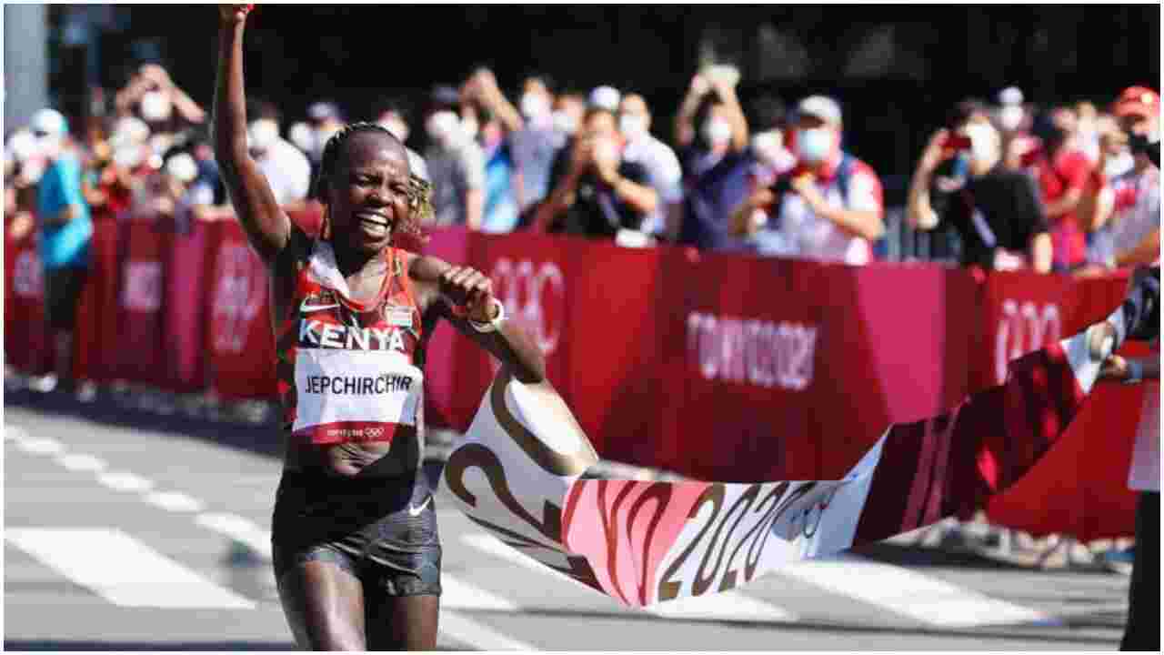 Jepchirchir, a two-time world half-marathon champion, bagged the Gold medal after finishing first in 2:27.20 ahead of her compatriot Brigid Kosgey and American Molly Seidel.