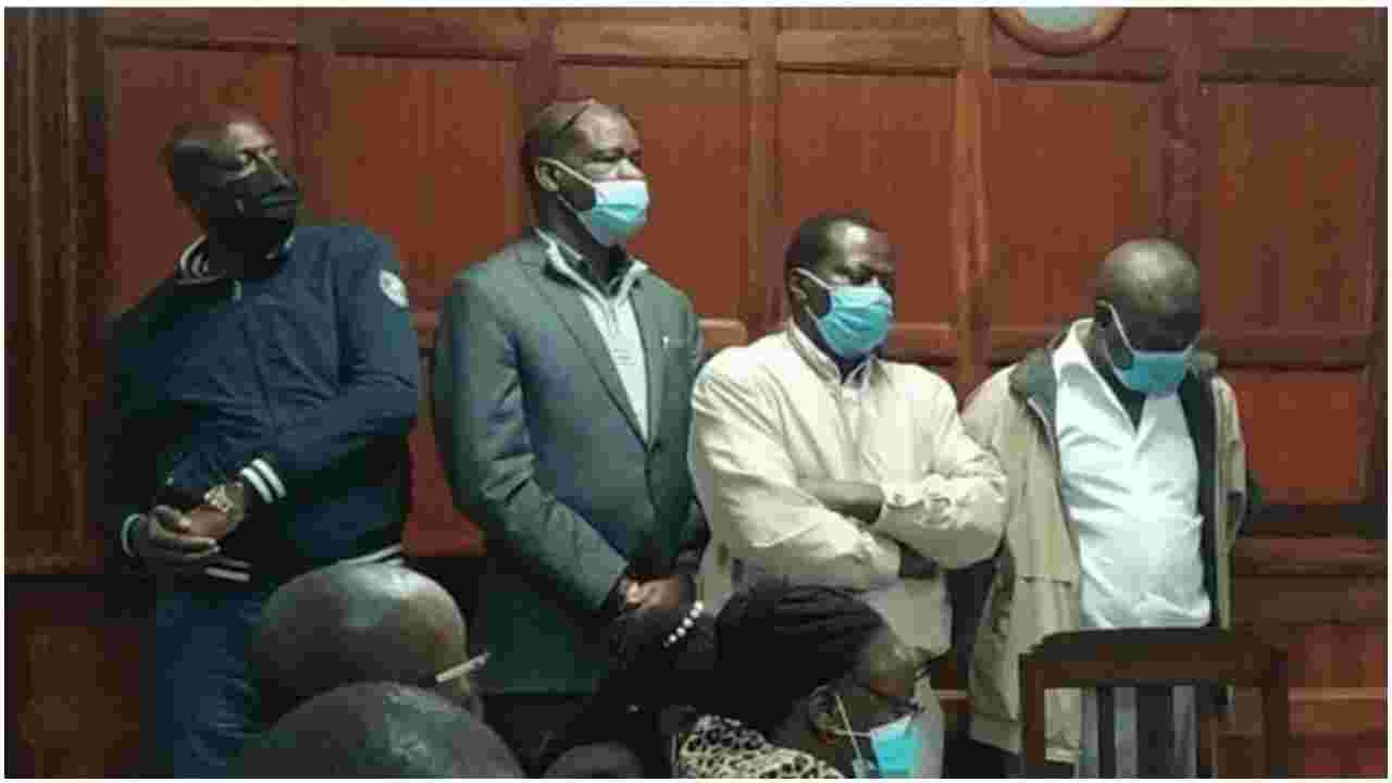 The four suspects were identified as former Kayole chief Alexander Hoops, Patrobas Awino, Peter Gitau, and Peter Njoroge.