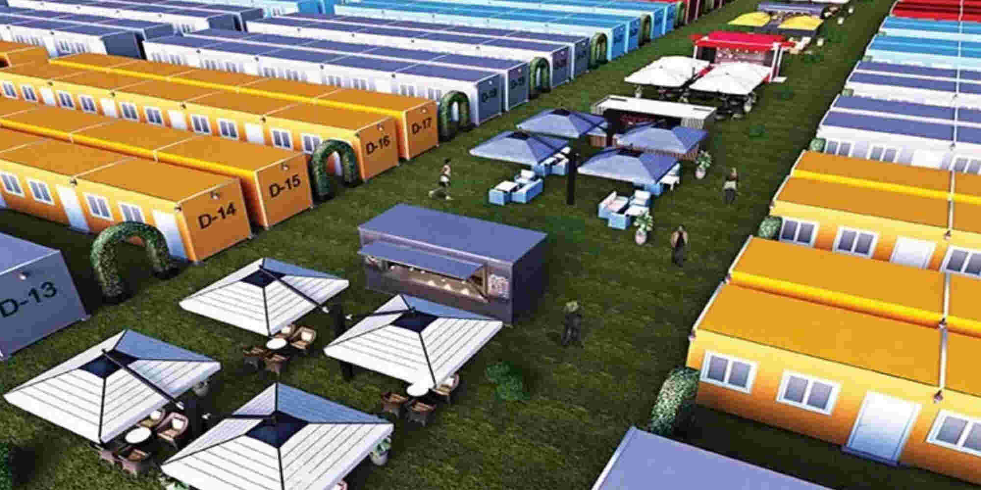 The fan villages are in form of prefabricated cabins measuring 16 square meters and can accommodate up to two people with two single beds or one double bed per cabin.