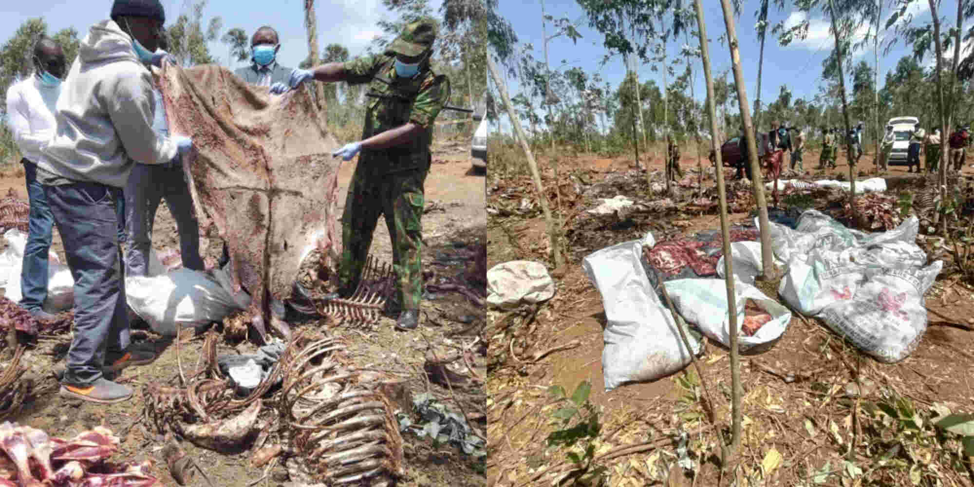 Patrick Muiruri (29) and Elizabeth Wangeci (32) were arrested on Wednesday after a multi-agency team raided a five-acre forest in Ndeiya where the suspects are alleged to have been slaughtering the animals under unhygienic conditions before selling their meat to butcheries in Nairobi and Kiambu.