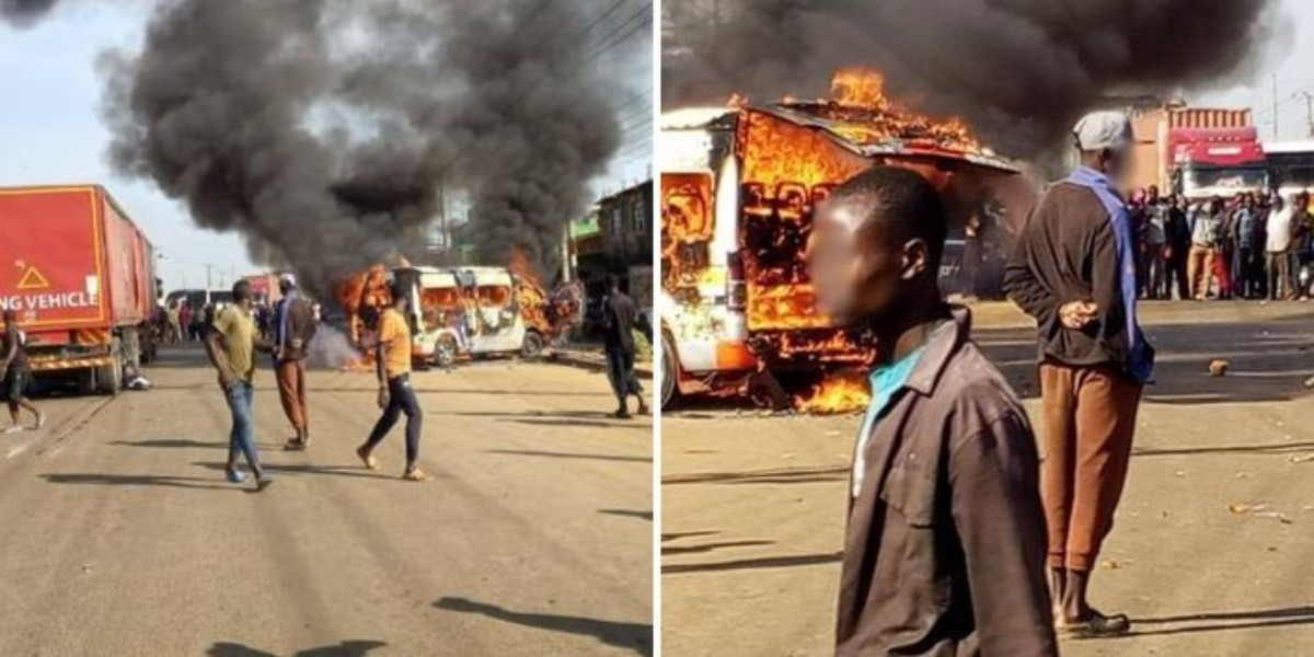 According to initial reports, the 14-seater matatu lost control and struck the boda boda rider, who died at the scene. The incident quickly escalated when fellow boda boda operators confronted the matatu driver, accusing him of reckless driving. The confrontation turned violent, and the vehicle was set on fire by an angry mob.