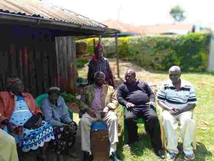 In the photo, Kibaki is seen seated outside his sister's compound together with his sister and others believed to be members of the family.