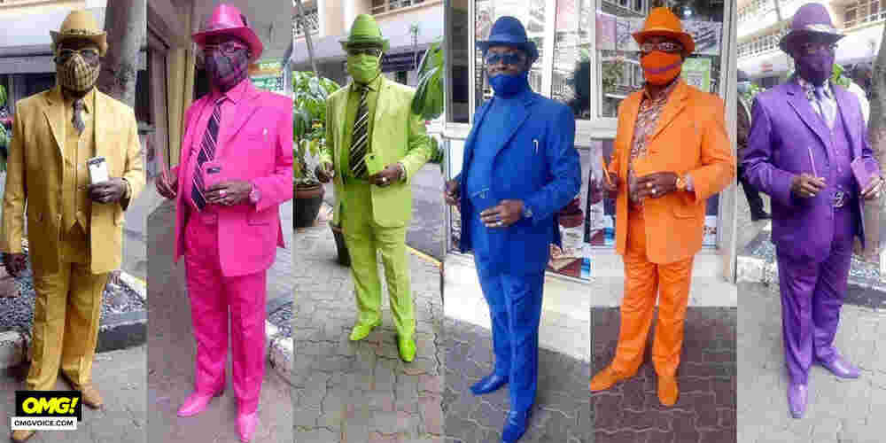 Mwangi says he owns 160 suits, 300 caps, and more than 200 pairs of shoes including facemasks. Whenever he goes out, he steps out in matching outfits.