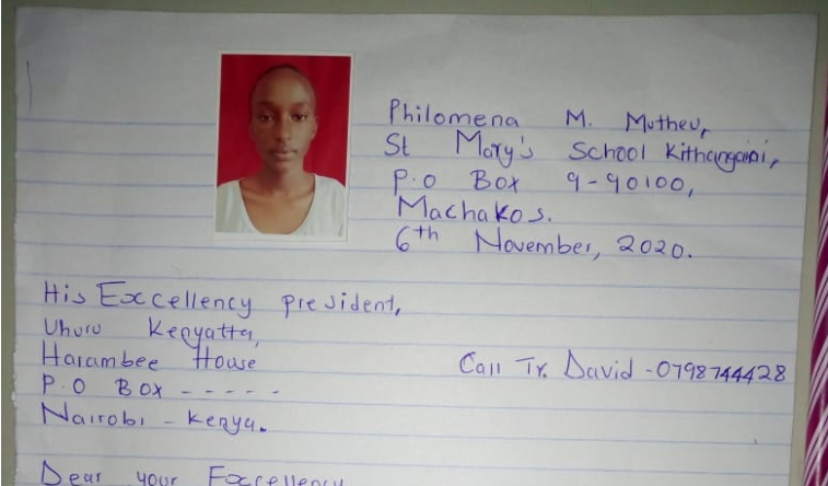 Philomena Mutheu, a KCSE candidate at St. Mary’s School in Kithangaini, Machakos penned the letter after she was sent home over outstanding fee arrears amounting to Sh26,958.