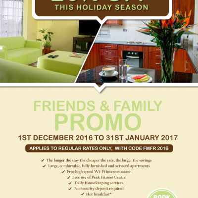Save up to 20% off your stay at Batian’s Peak Serviced Apartments this holiday season.